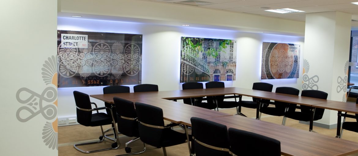 Duffel Design has worked alongside Bank of Cyprus, providing design services at their UK Headquarters in Central London. The brief was to visually communicate their history and business journey through a collection of bespoke panels at their meeting rooms, social event rooms and the board room at UK Headquarters in Central London. These panels through their text and commissioned photographic imagery convey the rich connection that Bank of Cyprus holds with it’s neighbours in Fitzrovia and with the greater international financial sector.